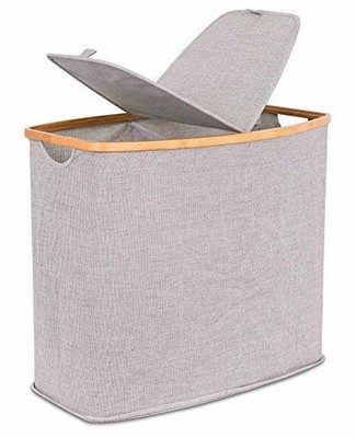 Songmics double laundry hamper with lid, divided laundry basket with handles, bamboo hamper with liner for laundry room, bedroom, 100l, distressed gray ulcb64gw 46 out of 5 stars 609 $3799 $ 37 bamboo laundry hamper. Bamboo canvas hamper double is designed perfectly with a soft gray appeal and natural bamboo contrast that will provide an elegant touch to any room.